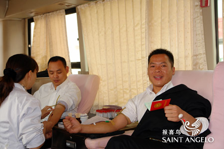 11月3日,停放在报喜鸟工业园区的永嘉县血站献血车里暖流阵阵,场面温馨。许多位多次参加过无偿献血的员工俨然与血站的工作人员成了朋友,一见面就攀谈起来,有的说“我三次了!”,有的说“我五次了!”,有的说“车队的王维龙已经献了8次了!”一位刚来报喜鸟工作的应届女大学生挽起胳膊,羞涩地说:“我是第一次献血,以前想到抽血都害怕。今天本来也不敢来,但很多同事都来了,被他们的精神所感染,治病救人还有益自身健康,一举多得呢!”。现场,集团党委书记周永温填好献血登记表,工作人员查阅电脑,发现周书记离上次自主献血才三个多月,间隔时间过短未能通过审查,周书记面露遗憾的神情。