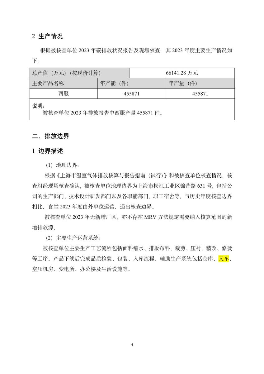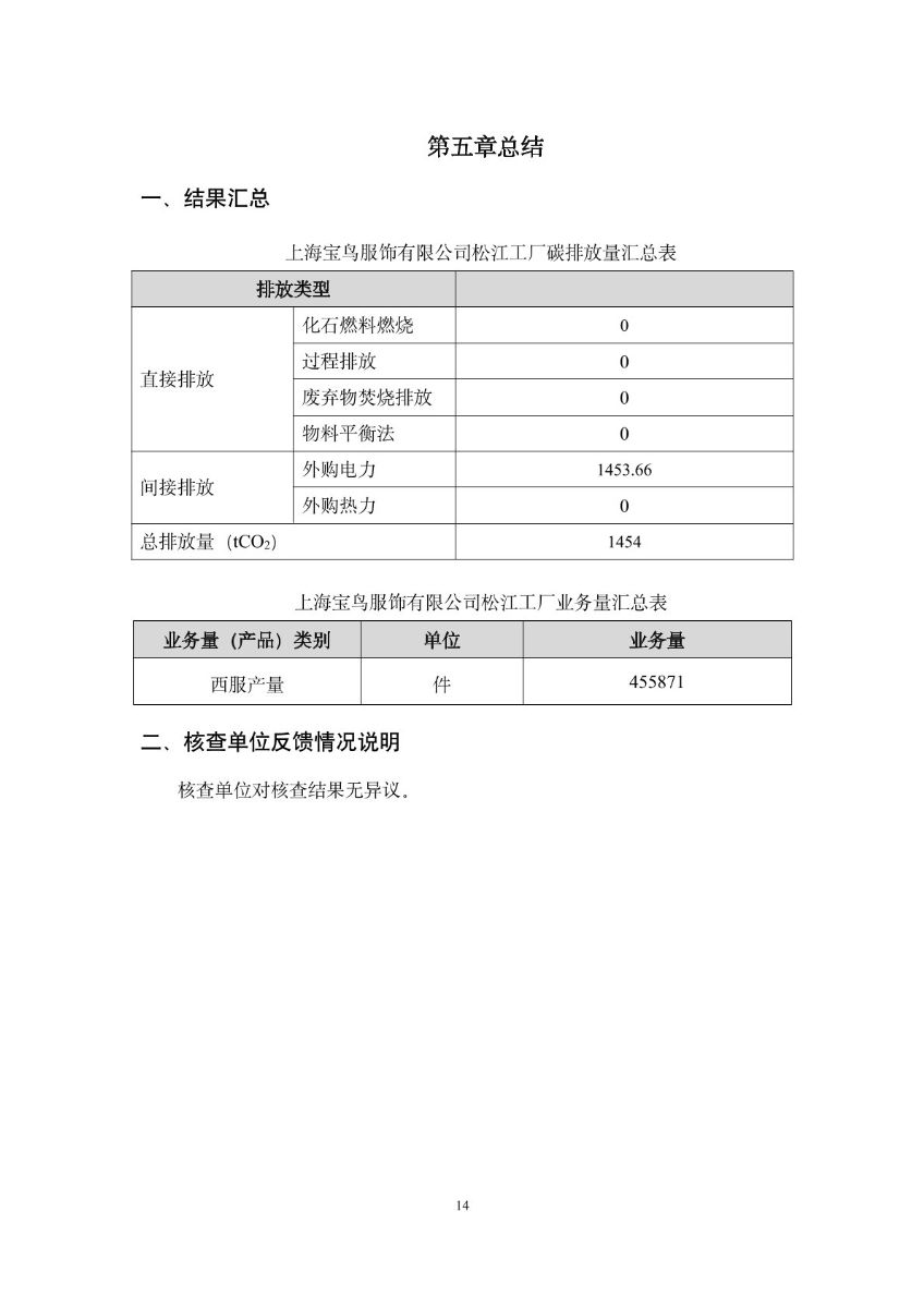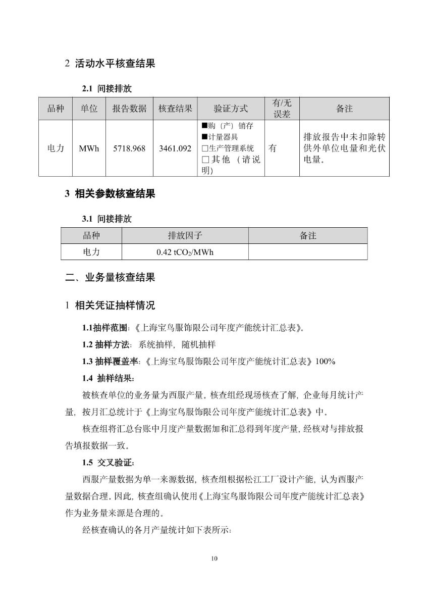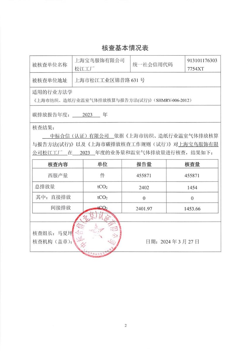 上海宝鸟服饰有限公司-碳排放核查报告-2023年度